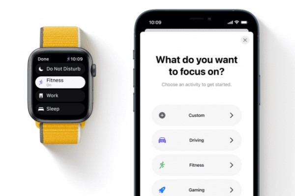 업무나 여가 시간 등 상황에 따라 받아보는 알림을 제어할 수 있는 iOS 15의 포커스 기능은 애플워치OS 8과 연동됩니다. 애플워치에서 방해 금지 모드를 켜면 아이폰에도 동일하게 적용됩니다.